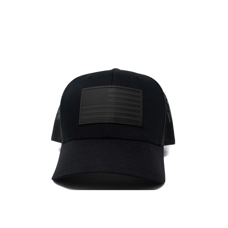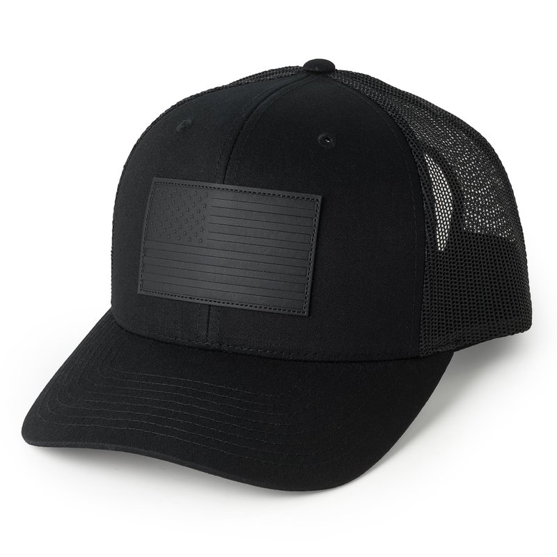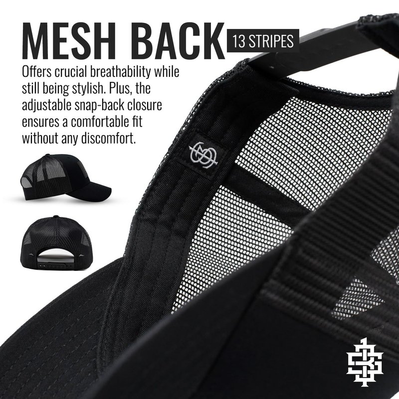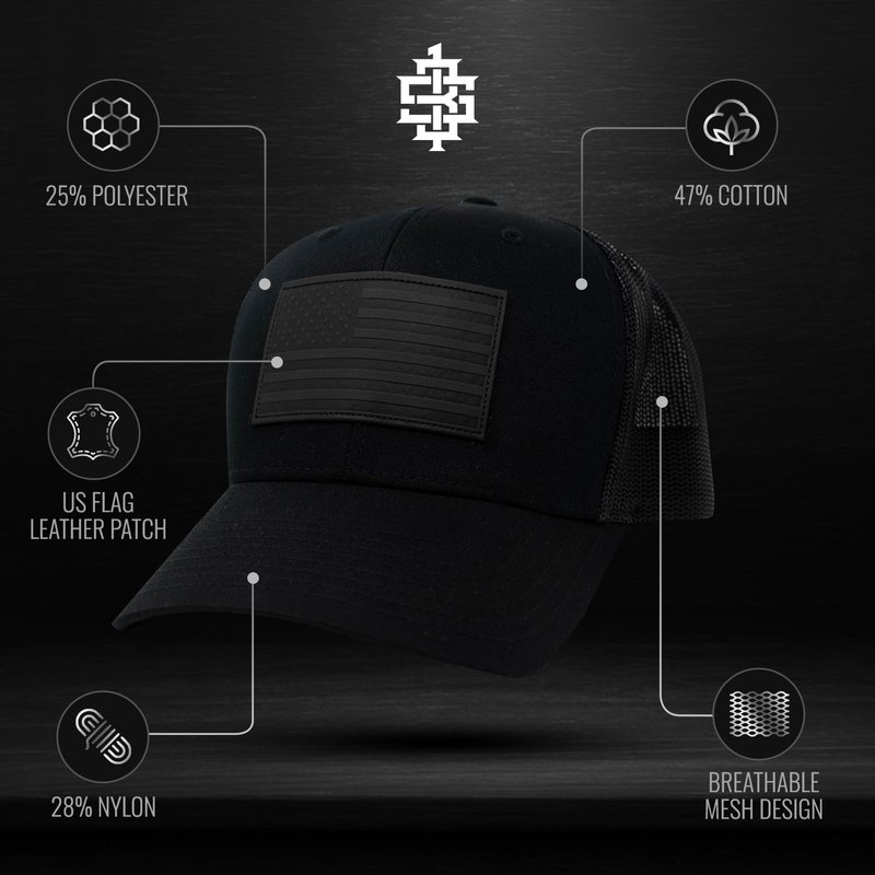 13 STRIPES American Flag Hat – Leather Patch Mesh Back Snapback Hat for Men & Women USA Flag Trucker Hat, Casual Unisex Hat - Blackout