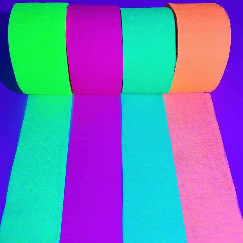 - 【All OCCASIONS 】Our luminous Crepe Paper Streamers perfect for blacklight dark glow party decorations, they will glow in the black light,birthday party,anniversary,festival celebrations, blacklight party.which is very suitable for your neon theme or luminous birthday party.