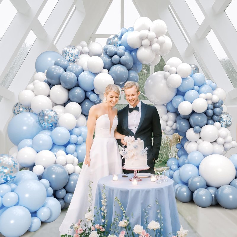 - Package Include: The blue and white balloon arch kit contain 57pcs white balloons(18inchx2, 10inchx25, 5inchx30), 42pcs light blue balloons(18inchx2, 10inchx20, 5inchx20), 20pcs dusty blue balloons(10inchx10, 5inchx10), 12inch blue confetti balloonsx10, ribbonx1, glue dotx60, decorative stripx1