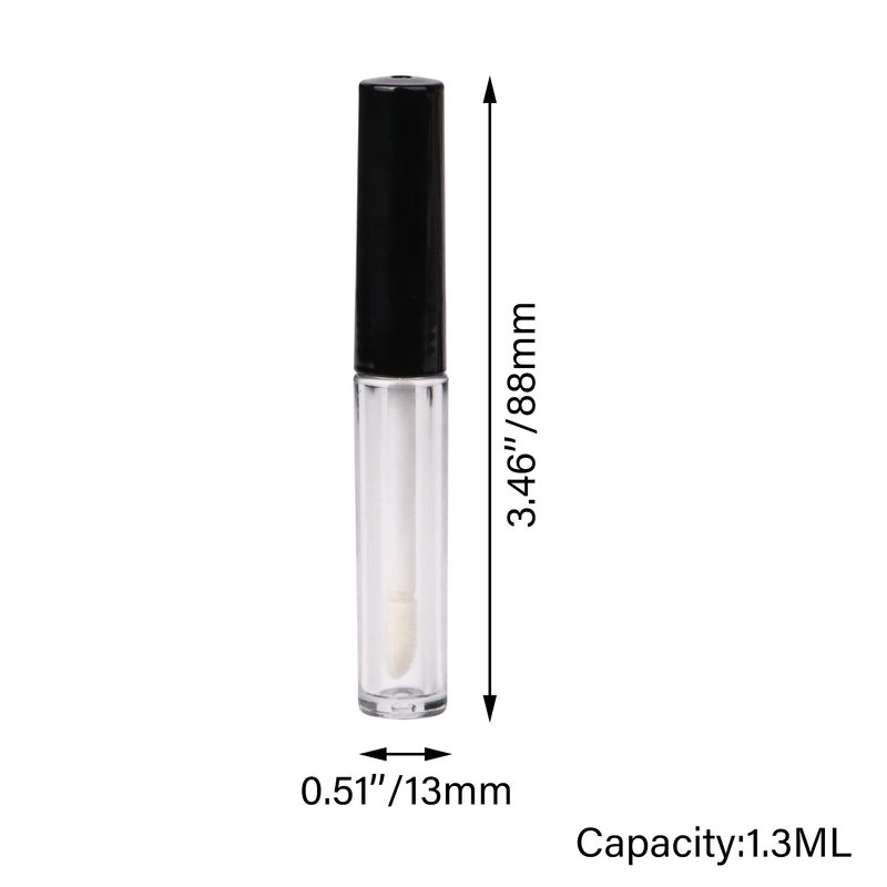 1.3ml Empty Lip Gloss Tube Lip Gloss Wand Bottles Containers Pack of 10 (Black Cap)