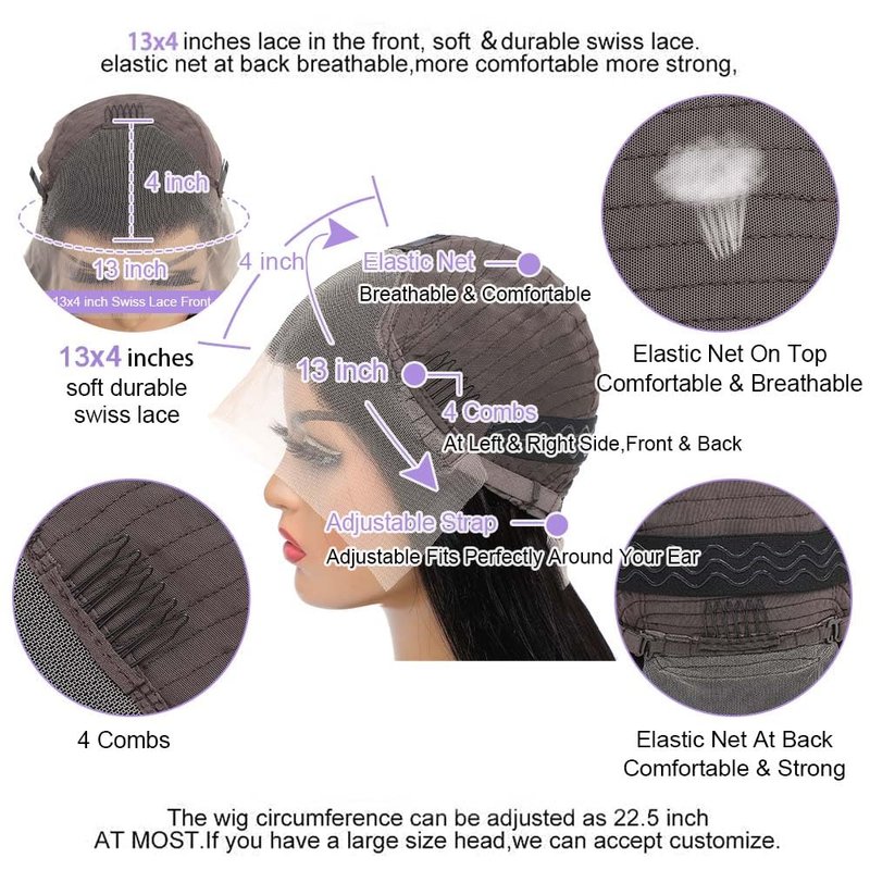 - HD Lace Front Human Hair Wig Pre Plucked:Our Bob Wig Human Hair 13x4 Frontal Lace Wig Have Large Space and Deep Parting of Lace,According to Your Like, can do any Side Part or Middle Part .Our Wigs is Medium Cap Size(21.5Inch - 22.5Inch) with 3 Combs and Adjustable Straps, Easy to Adjust, It Can Help You Fixed on Your Head,More Easy to Wear.