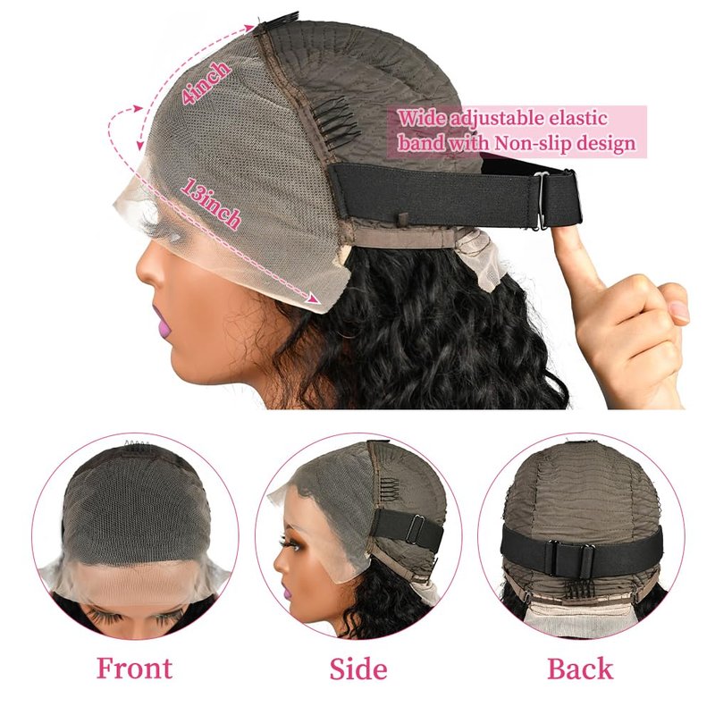 - 【13x4 HD Lace, Seamless Wig Cap and Adjustable Straps】Featuring a versatile 13x4 deep wave lace front wig human hair and medium cap size (21.5-22.5 inches) with 4 combs and elastic adjustable straps, glueless wigs human hair pre plucked pre cut ensures a snug and secure fit for all. lace front wig human hair pre plucked cafted from HD Swiss lace, invisible and skin-perfect match that's breathable, earning glueless wigs human hair rank among the top human hair lace front wigs.