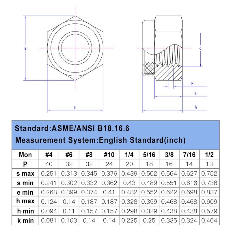- Package: 25 PCS 1/4-20 Nylon Insert Hex Stainless Locknuts (Specification described in the pictures)