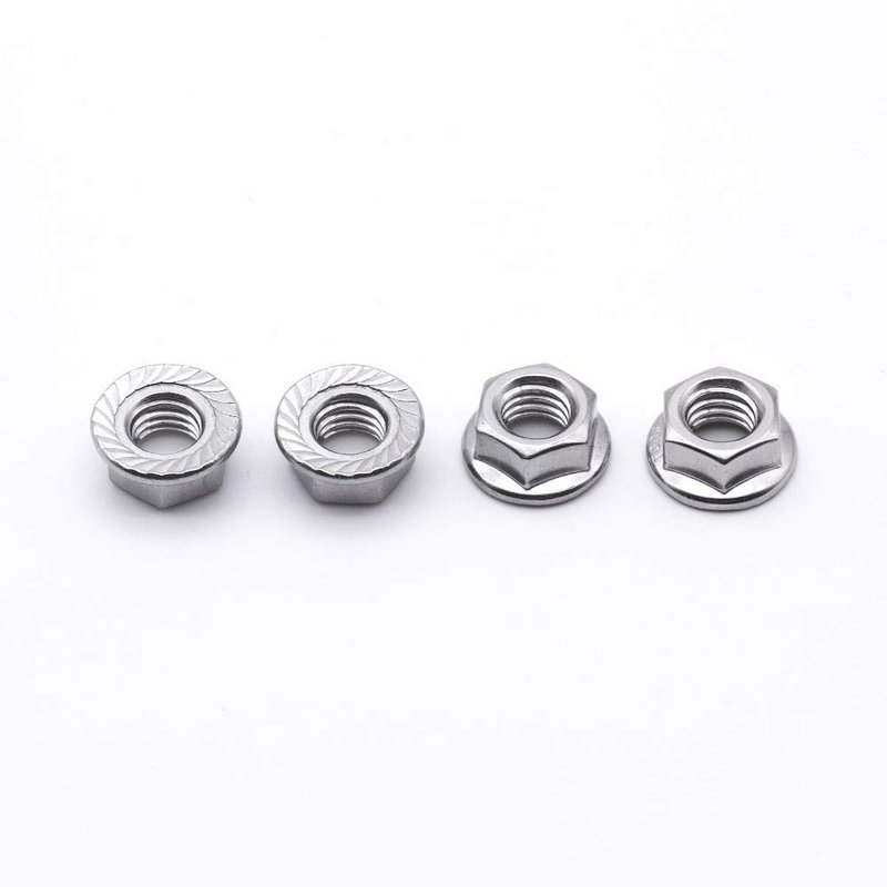 br>Flange nuts have a washer-like base to distribute pressure over a greater surface area and ensure the fastener stay tight. Flange nuts have flat and serrated designs. Serrated flange nuts are fabricated with a built in serrated washer that resists loosening due to vibration.They are commonly used in assembly lines where operations are speeded by using a single fastener instead of a nut and a washer.