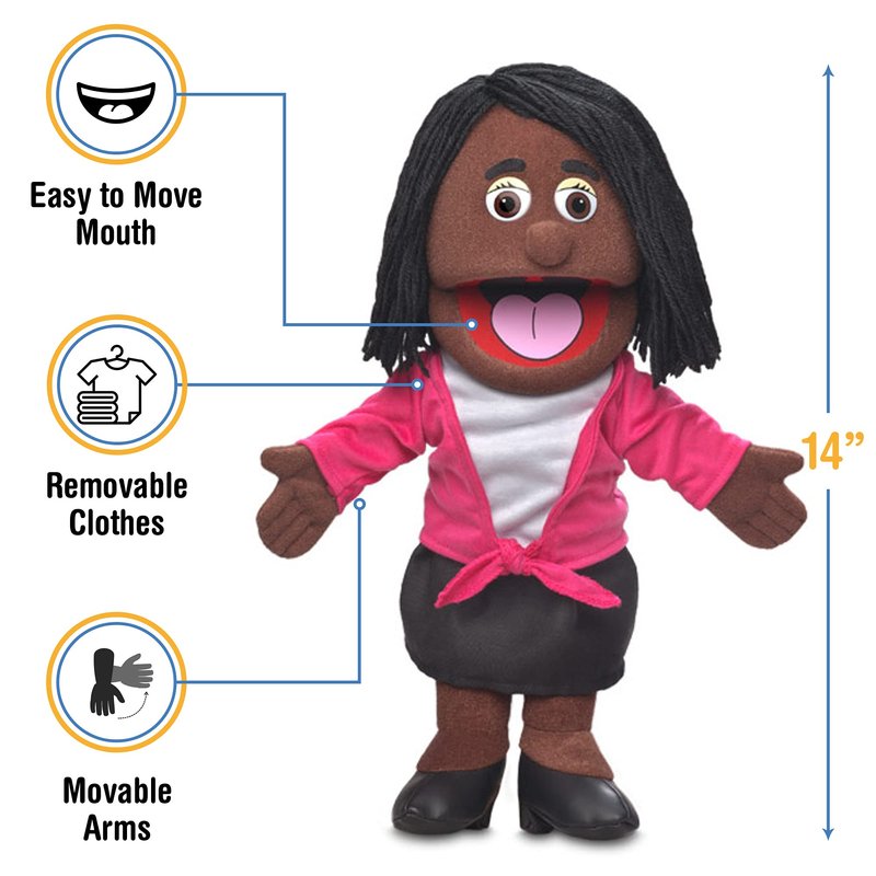 14" Barbara, Black Mom/Teacher, Hand Puppet