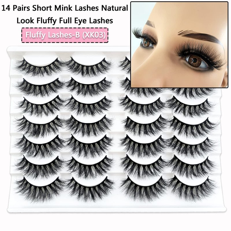 14 Pairs Short Mink Lashes Natural Look, 3D Wispy 12-18mm Cat-Eye Faux Mink Lashes Fluffy, Natural Wispy False Eyelashes Pack by Heracks (XK03)