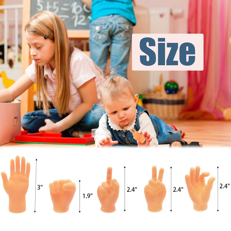 - ✋ Package Content:You will get 14 packs of little fingers.5 left hands,5 right hands,1 fist,1 finger hand for victory,1 OK finger hand and 1 middle finger gesture hand.You can play with your friends,family or pets with these fun little hands.