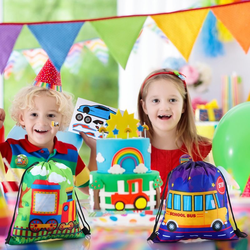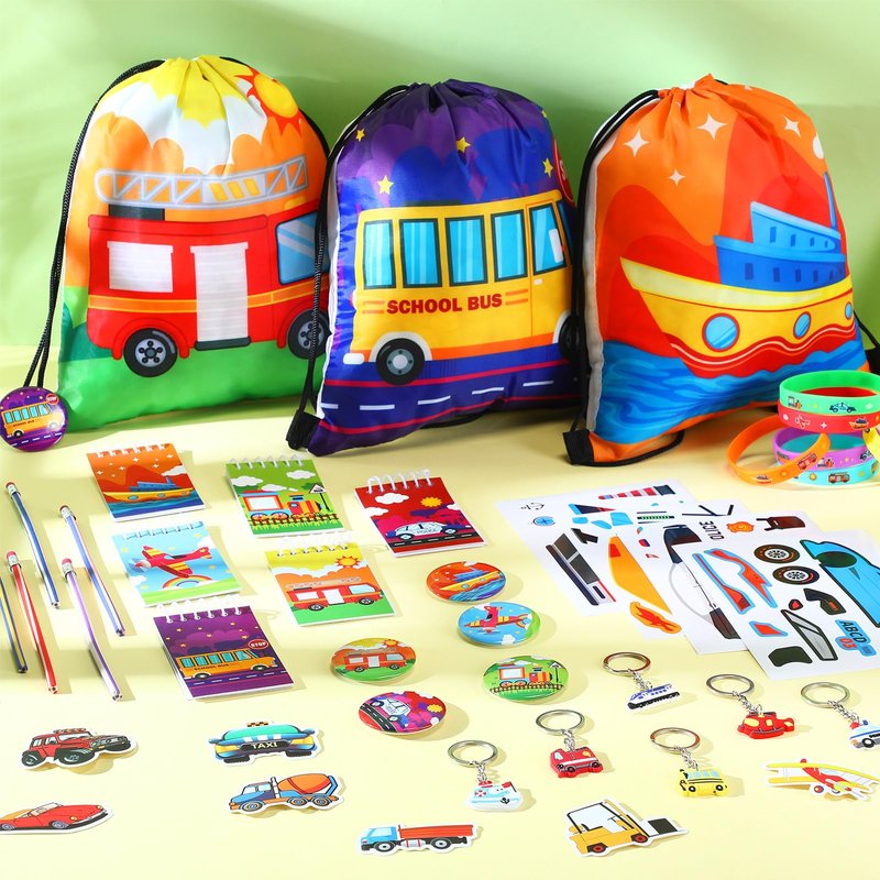 - Transportation Party Favors: you will receive 144 pieces of transportation birthday party supplies, including 12 transportation drawstring bags, 12 transportation silicone bracelets, 16 transportation DIY stickers, 18 transportation notepads, 12 transportation button pins, 12 keychains, 12 soft pencils and 50 transportation themed stickers, enough for your daily use and party favors needs, enjoying the nice transportation party with friends