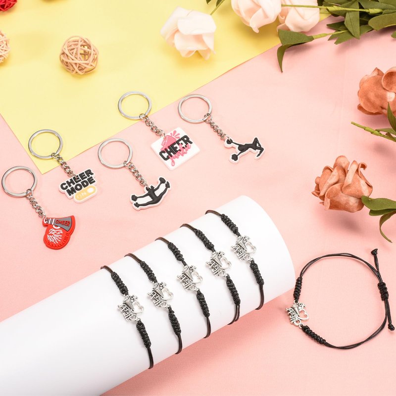 - ★Cheerleading gifts: Cheerleading gifts come with fashionable bracelets, keychains,stickers and cheerleading hair ties. With cheering elements, cute and beautiful, it brings you a good mood. They will be a good gift choice for your team, and you can give them to your partner, daughter, or teammates。