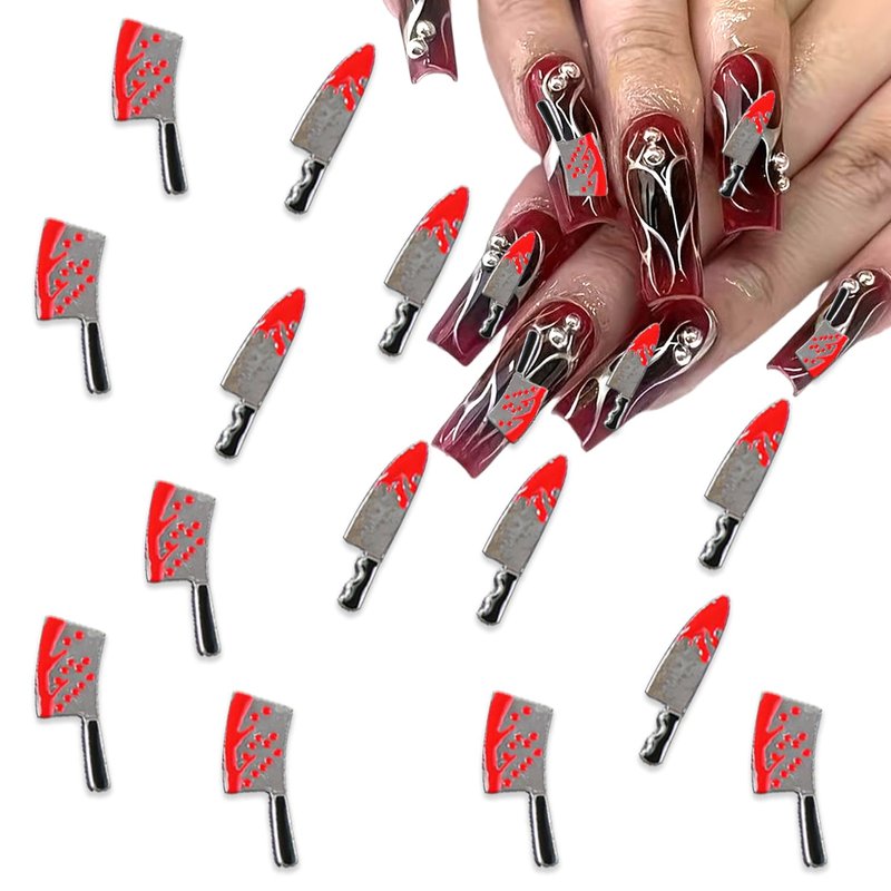 Halloween Nail Jewelry Knife Nail Charms 3D Silver Horror Halloween Charms Design Knife Nail Gems Alloy Nail Rhinestones for Girls DIY Acrylic Nail
