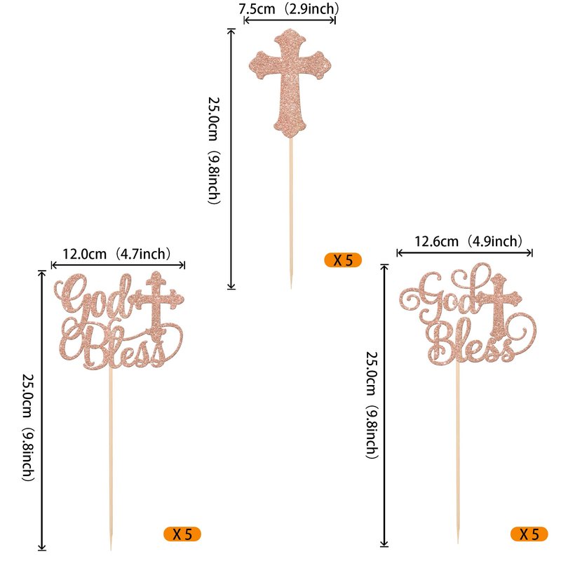 Package includes 15 pack double side glitter god bless table centerpiece sticks, they are assembled well. Which can meet your different party decorations needs. The size is 2.9*9.8 / 4.7*9.8 / 4.9*9.8 inch ( with stick )