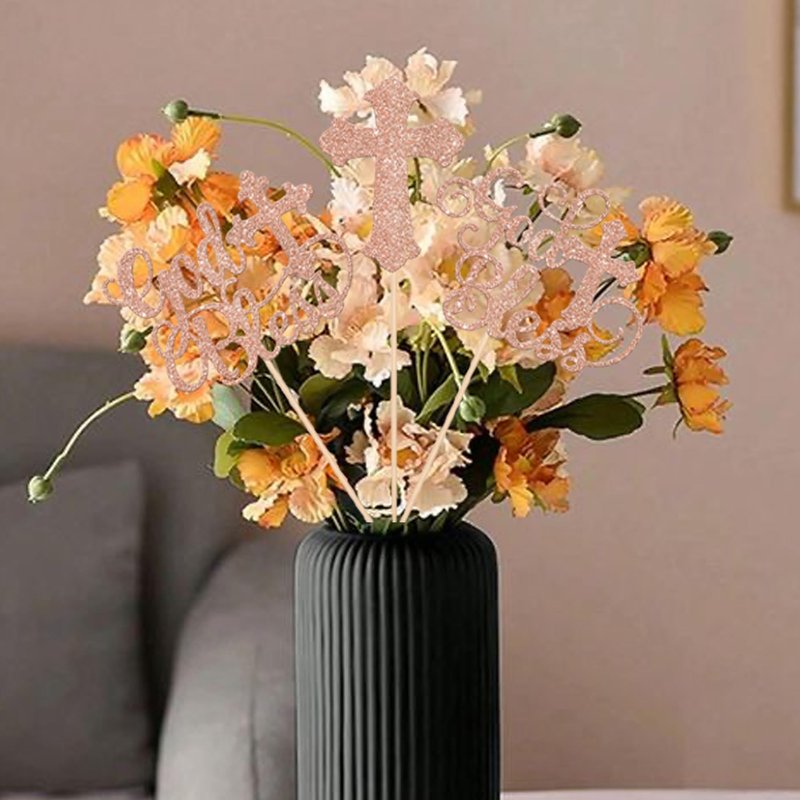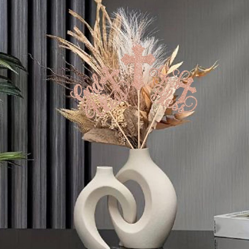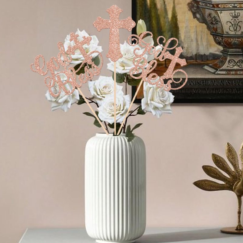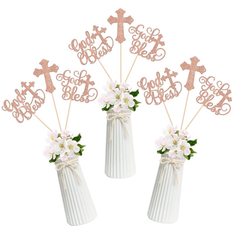 15 Pack God Bless Party Decorations, Baptism Centerpiece Sticks, First Communion Table Toppers Decorations for Religious God Bless Babyshower Christian Baptism Party Decorations Rose Gold