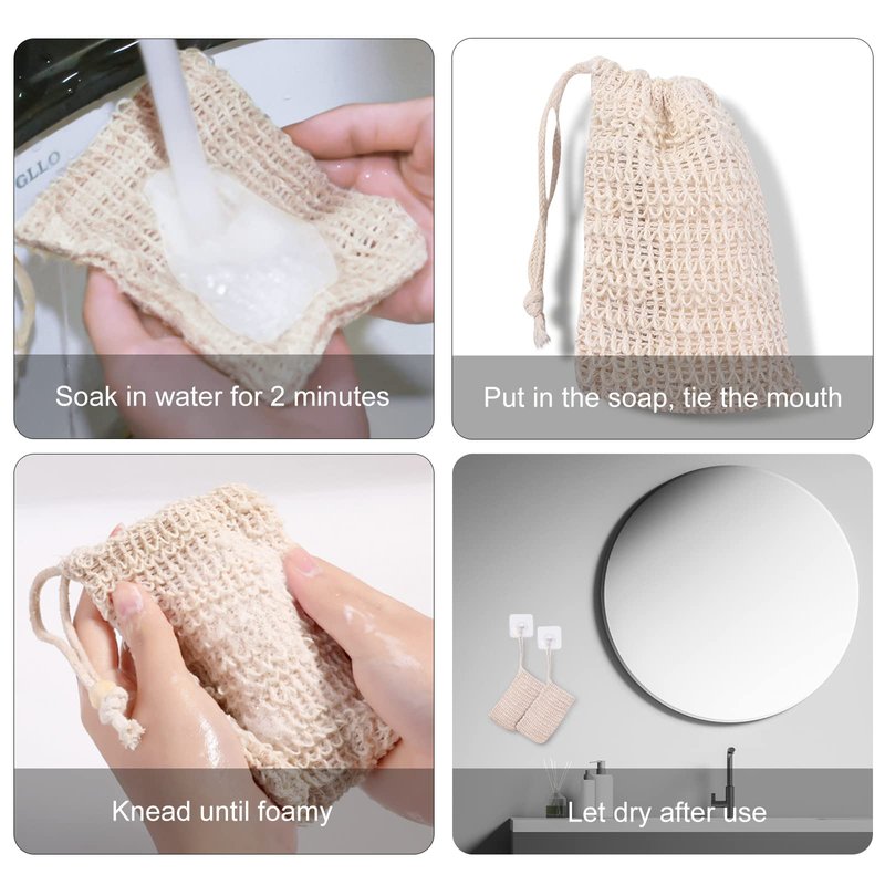 - 【Rational Design】The soap saver bag is made from sisal, which is rough and durable, that it will stay with you for a long time. Drawstring design not only ensures that small soap do not fall off, but also allows it to be hung on the wall and quickly dried.