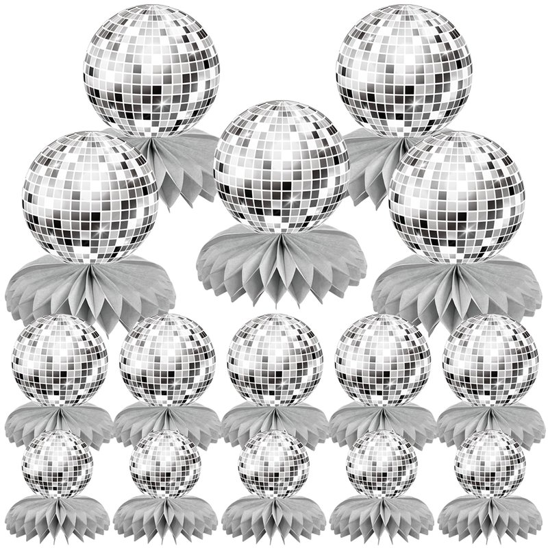 - This set of 15 pcs disco ball party decorations will add a unique touch to your 70s disco party table centerpieces.