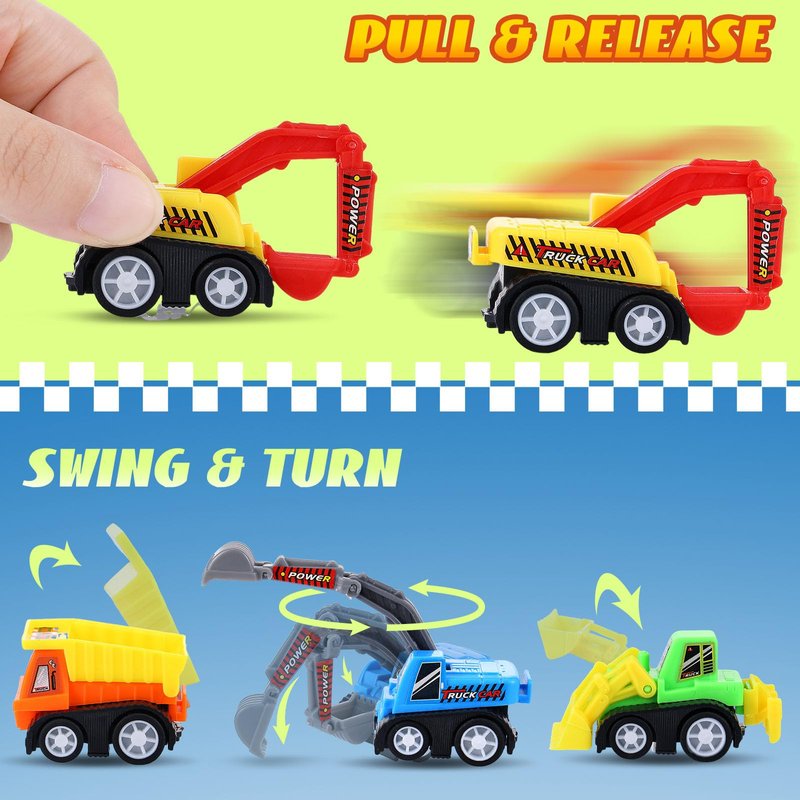 - Easy to play: the mini toy vehicles have no batteries, just pull back gently and have fun, kids can play anytime and anywhere, and the kids toy cars are designed with smooth edges and are free from any sharp parts, ensuring a worry-free play experience