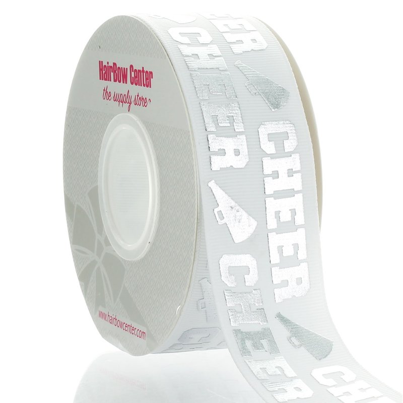 Printed Ribbon for Crafting, Scrapbooking and Hair-Bows. Get creative with HairBow Center's printed grosgrain ribbon! Choose from 5 yards, 25 yards or 100 yards roll of printed grosgrain ribbon. Cheer squads, dance teams and cheerleading teams will look better than ever with bows from this ribbon. The ribbon is perfect for all types of other craft projects: hair bows, decor, sewing, scrap booking, and more. The cheer print on the ribbon is slightly raised and is a shiny, reflective foil that really adds some sparkle. This grosgrain ribbon by HairBow Center has a beautiful sheen and the perfect consistency for shaping hair-bows as well as for use for various crafts. It is sturdy, but not too stiff! This ribbon is professionally packaged on a plastic core spool, allowing you to re-roll any extra ribbon and easily store it for later -keeping your ribbon wrinkle-free. (On rare occasions, your ribbon may be wrapped without the plastic core if we are low on inventory and must cut down from a larger spool). The ribbon print is extremely durable and will not rub or flake off under normal wear. **25yd and 100yd reels may contain a splice**Shipping Summary: