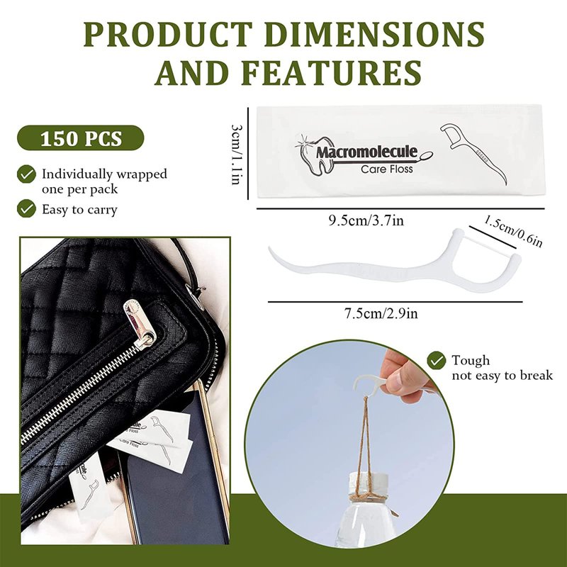 - There are a total of 150 floss in a bag, each in individual packaging.