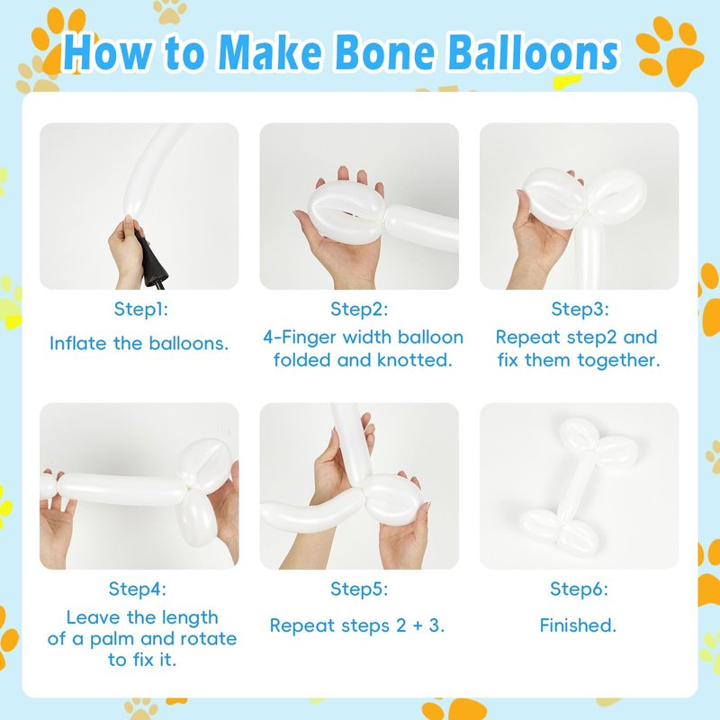 - Easy to Use: The paw balloon garland have white long balloons, ribbon, glue dot, decorative strip to help complete balloon arch kit more easily. first, Inflate the balloons with balloon pump, crossing each other to form some balloon clusters. Then, insert the balloon knot into the decorative strip hole, or tie them together with ribbon or long balloons to form balloon arch. Finally, hang it on the party backdrop, use glue dots to attach 5 inch balloons to fill gap area