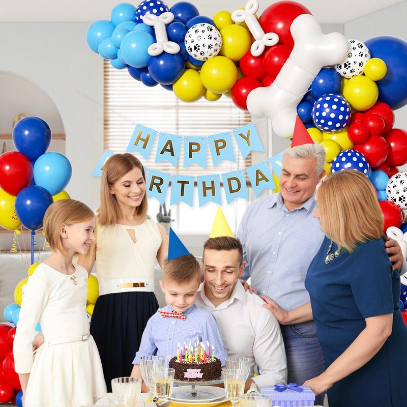 - Package Include: The paw balloon arch kit include 41pcs royal blue balloons(18inchx1, 10inchx20, 5inchx20), 40pcs yellow balloons(10inchx20, 5inchx20), 41pcs red balloons(18inchx1, 10inchx20, 5inchx20), 11pcs light blue balloons(18inchx1, 10inchx10), 12inch blue polka dot balloonsx5, 12inch paw print balloonsx5, white 260 balloonsx5, 28inch bone foil balloonsx1, glue dotsx100, ribbonx1, decorative stripx1
