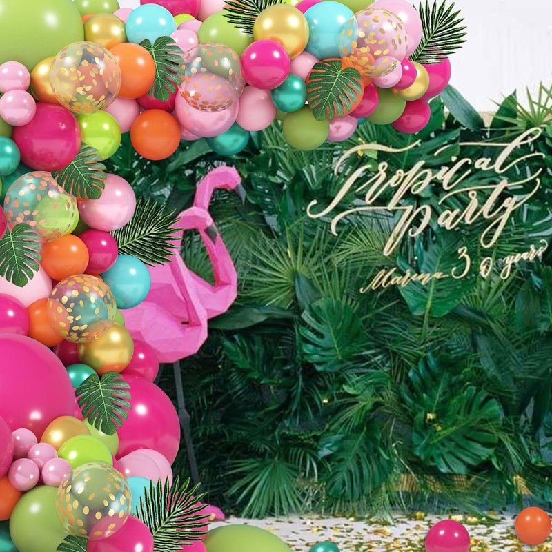 - Delightful Party Decorations: These tropical balloons create festive atmosphere for tropical party decorations, Hawaiian party decorations, luau party decorations, summer party decorations, beach party decorations etc. If you're dreaming of tropical-themed celebration, these flamingo party decorations have it all! Transform your space into a paradise with this stunning tropical balloon arch kit that combines the beauty of palm leaves and mix of bright-colored luau balloons.