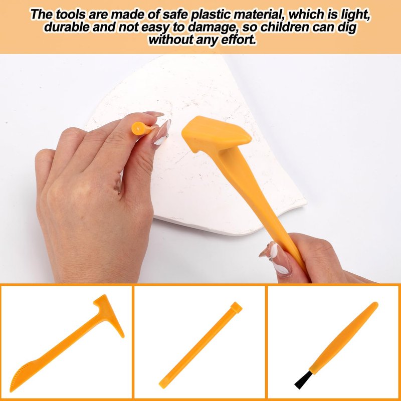 - Realistic Tools: The dinosaur fossil excavation kit contains hammers, chisels and brushes and functions like real tools, which can help children to learn more deeply and easily.