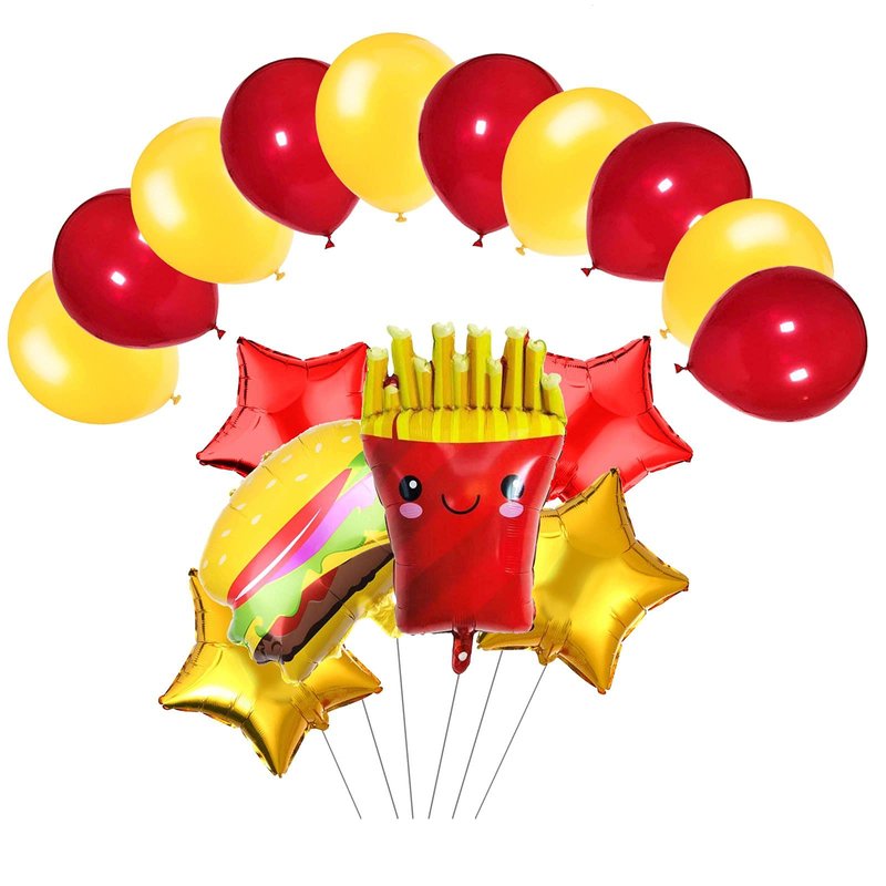 - Package Included: 1pcs french fries balloon, 1pcs hamburg balloon, 4pcs 18inch star balloons, 10pcs latex balloons.