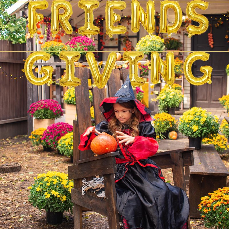 • PACK OF 13 | FRIENDSGIVING BALLOONS SET: This set includes 13 large 16-inch foil letter balloons spelling "FRIENDSGIVING." Perfect for adding a festive touch to your Friendsgiving, Thanksgiving Day, Autumn, and Fall decorations.