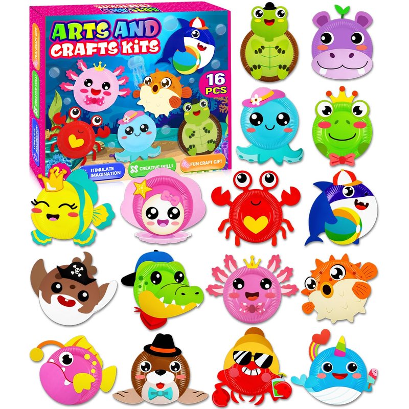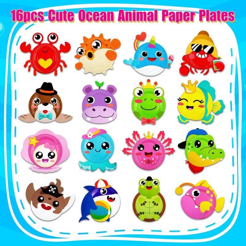 16 Pack Arts and Crafts for Kids, Toddler Crafts Ocean Animal Paper Plate Art Kit Gift for 3 4 5 6 Year Old Boys Girls DIY Crafts for Birthday Party Favor Preschool Classroom Christmas Party Games