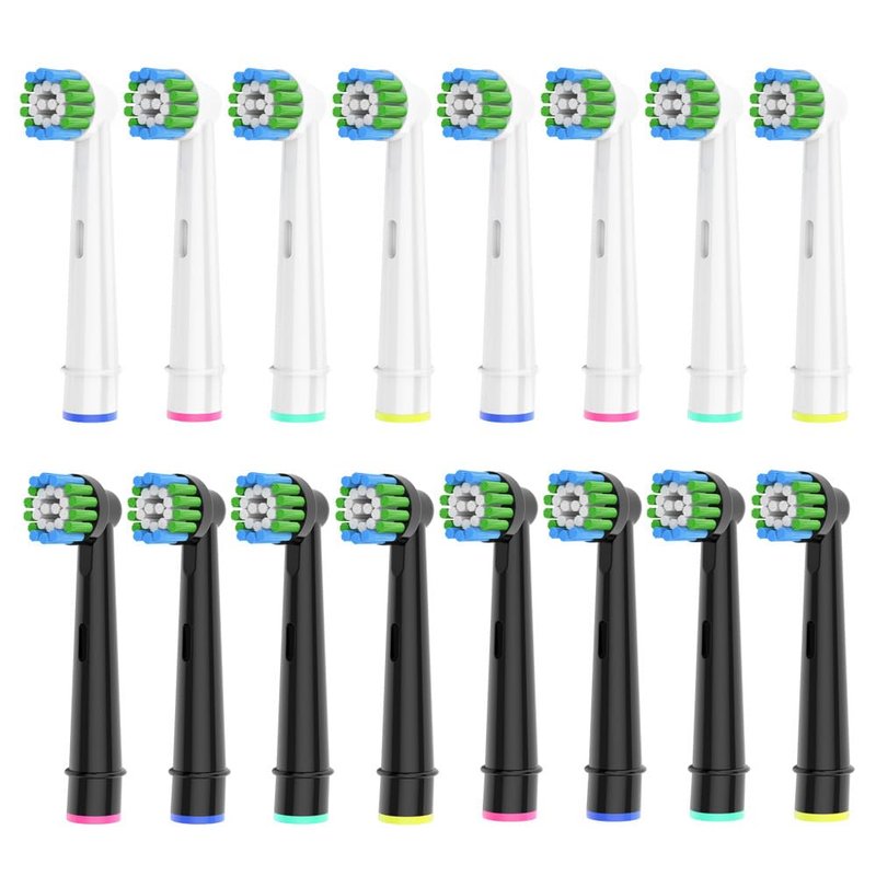 16 Pack Precision Replacement Brush Heads Compatible with Oral B Braun Electric Toothbrush. 8pcs White and 8pcs Black.