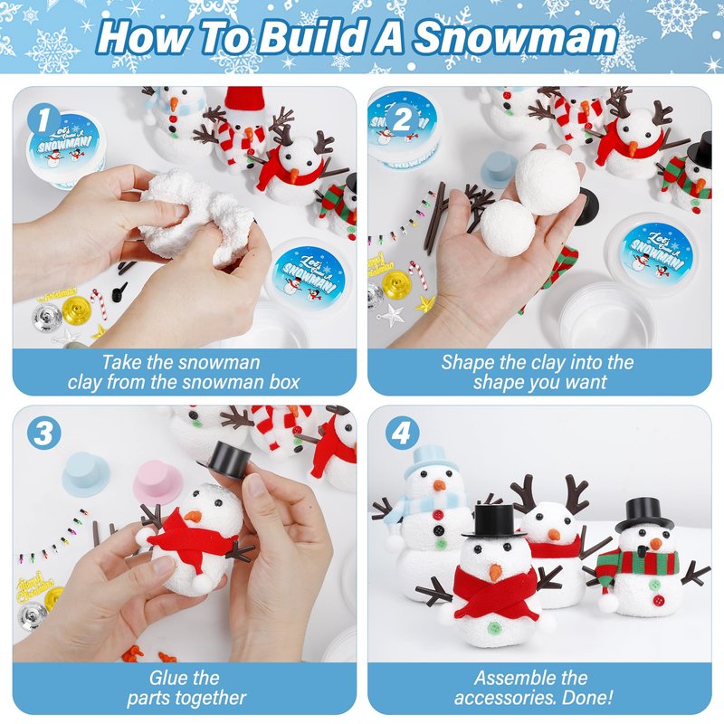 16 Pack Snowman Kit, Build a Snowman Craft Kit for Kids, Christmas Craft Creative Air Dry Clay Modeling Dough Crafts, Enhance Creativity Gifts Christmas Winter School Xmas Creative Supplies Decoration