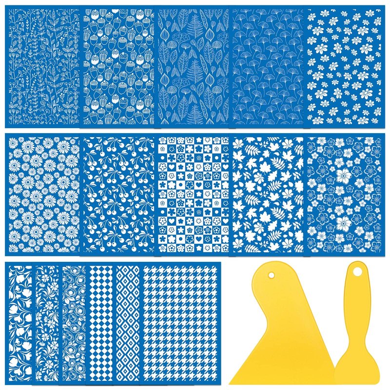 - Abundant Patterns to Choose: you will receive 16 pieces of silk screen stencils, assorted styles, including 4 leave patterns, 6 flower patterns, 2 fruits patterns and 4 geometric patterns, suitable for DIY use, the enough quantity and rich styles will suffice your needs; There are 2 scrapers in different sizes, easy and convenient to use