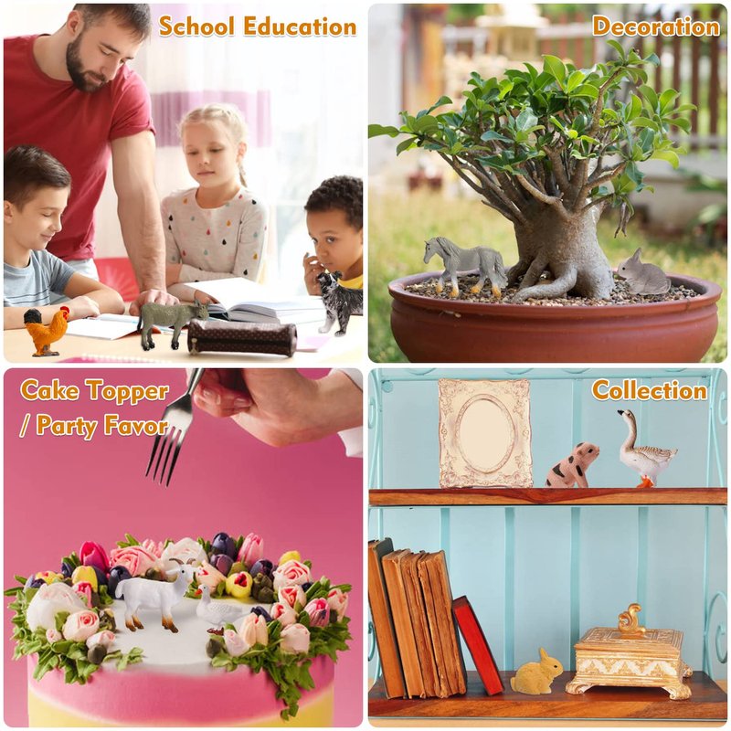 - 🐄【 Widely Used 】the farm animals figurine set is intended for teachers, collectors, animal lovers and pastry cooks; They are not only suitable for early educational tools, but also nice for farm party decorations, bath toys, harvest theme party favors , cake and cupcake toppers and make a farm animal-themed party for your children.Ages 3+ the great birthday gifts or party supplies.