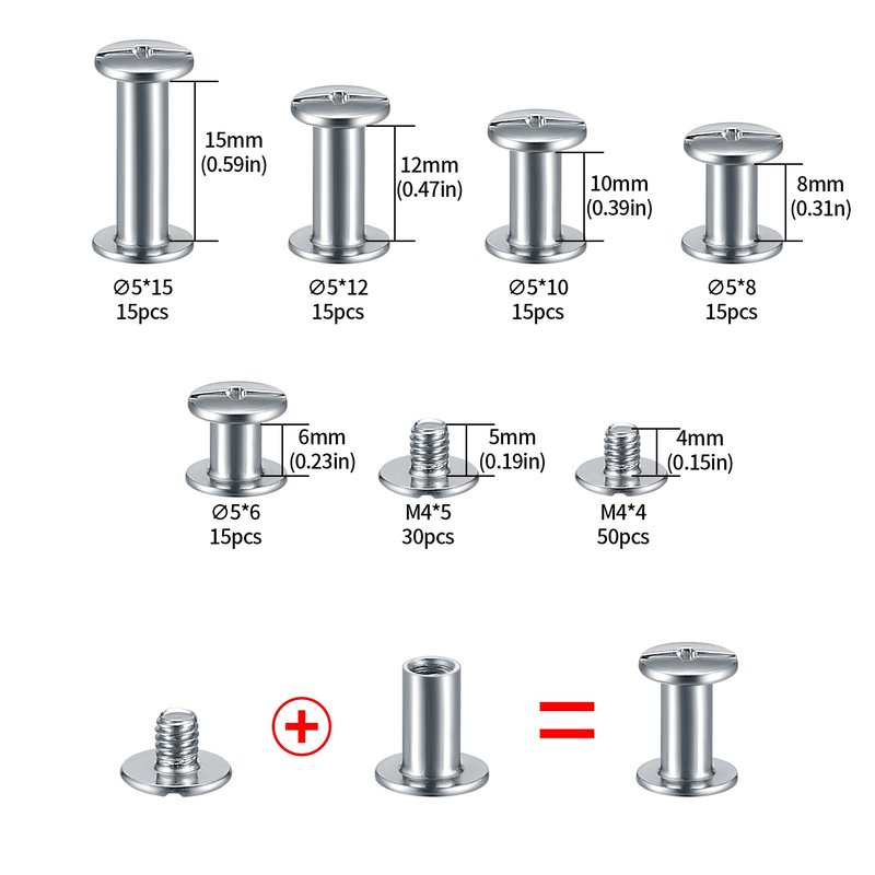 - Easy to Use: Chicago screws, also known as binding screws, are easy to use, and you only need to install two parts from both sides to achieve the binding effect. Widely used as book or album binding supplies/making saddles/leather bags.