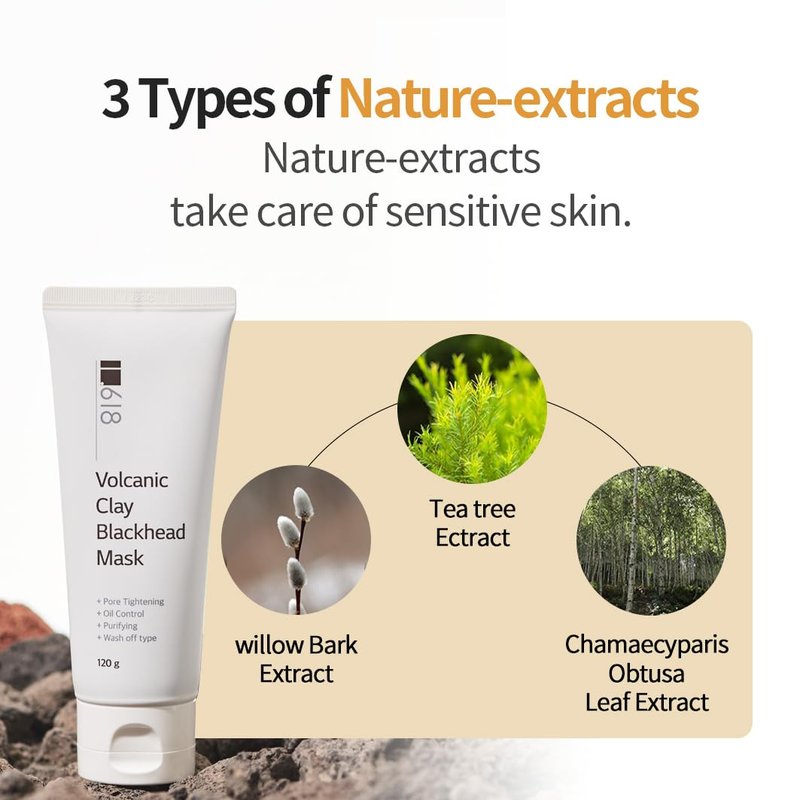 - ✔Removes sebum and blackheads without irritation : Volcanic ash ingredients such as kaolin and bentonite absorb wastes without irritation to the skin.