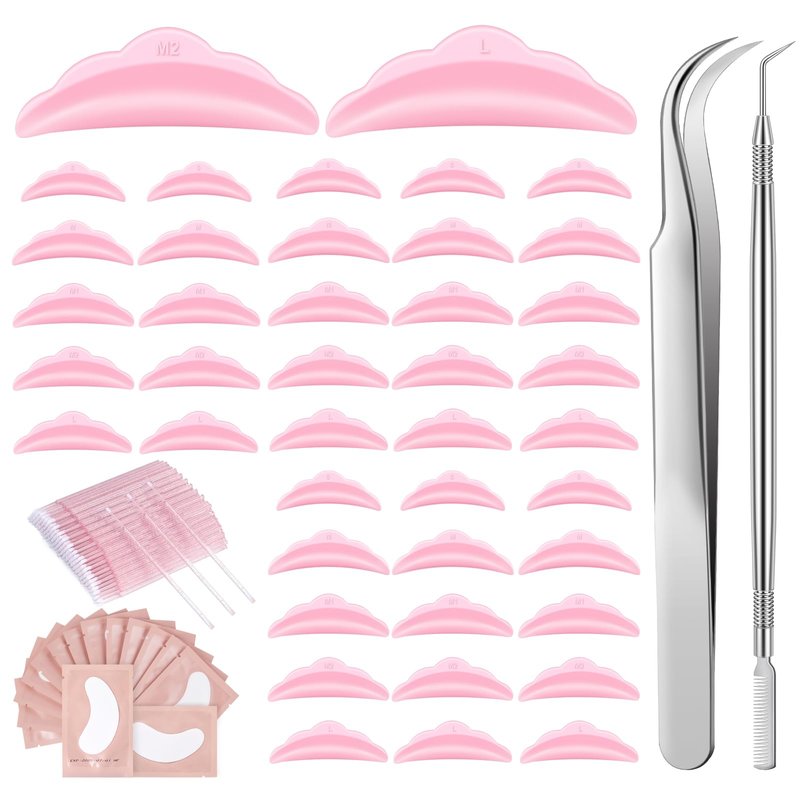- Professional Lash Lift Kit:5 types of tools are included in the eyelash lift kit. It features 50 pink lash lift pads, 1 lash separator tool and curved lash tweezer, 60 pairs of soothing eye pads, and 50 micro swabs , providing a realistic lash lift regardless of the length or shape of the lashes