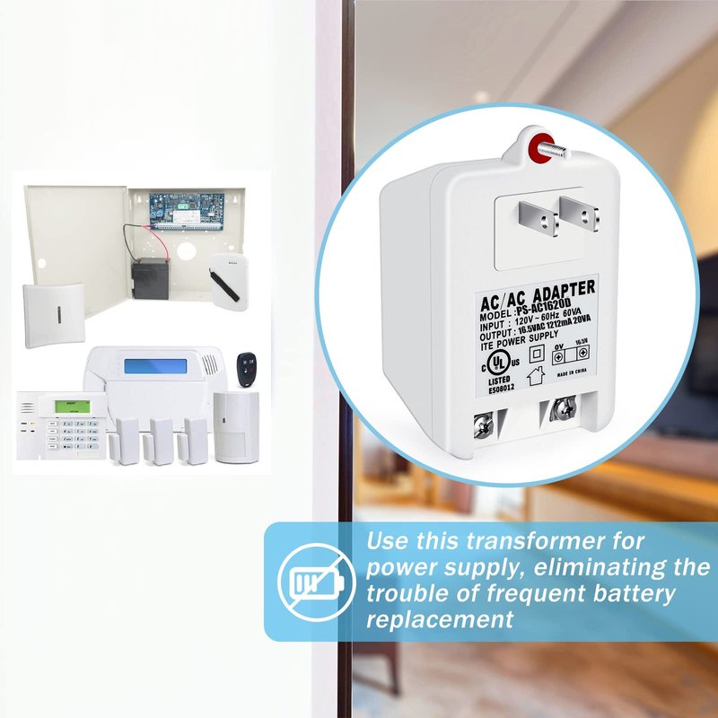 - ➡SPECIFICATION: input voltage: 120 VAC, 60Hz; Output voltage: 16.5V, 20VA SAFE AND STABLE auto-resetting (PTC) fused secondary, LED green power indicator