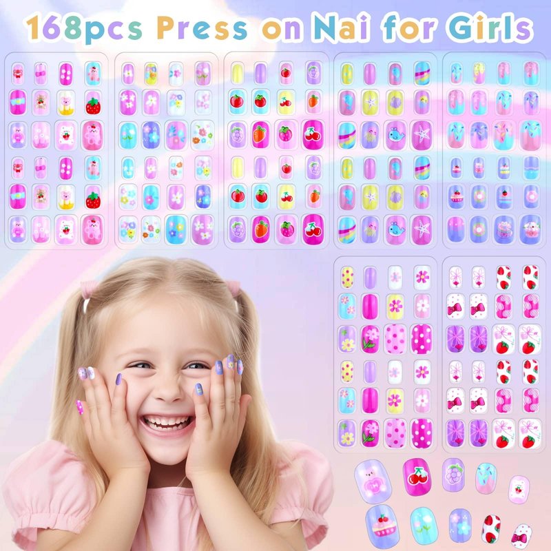 - Press on Nails for Kids Value Pack: Shynek fake nails set for girls come with 168pcs children press on nails set of assorted colors and lovely patterns, ideal for the girl's nail art decoration.