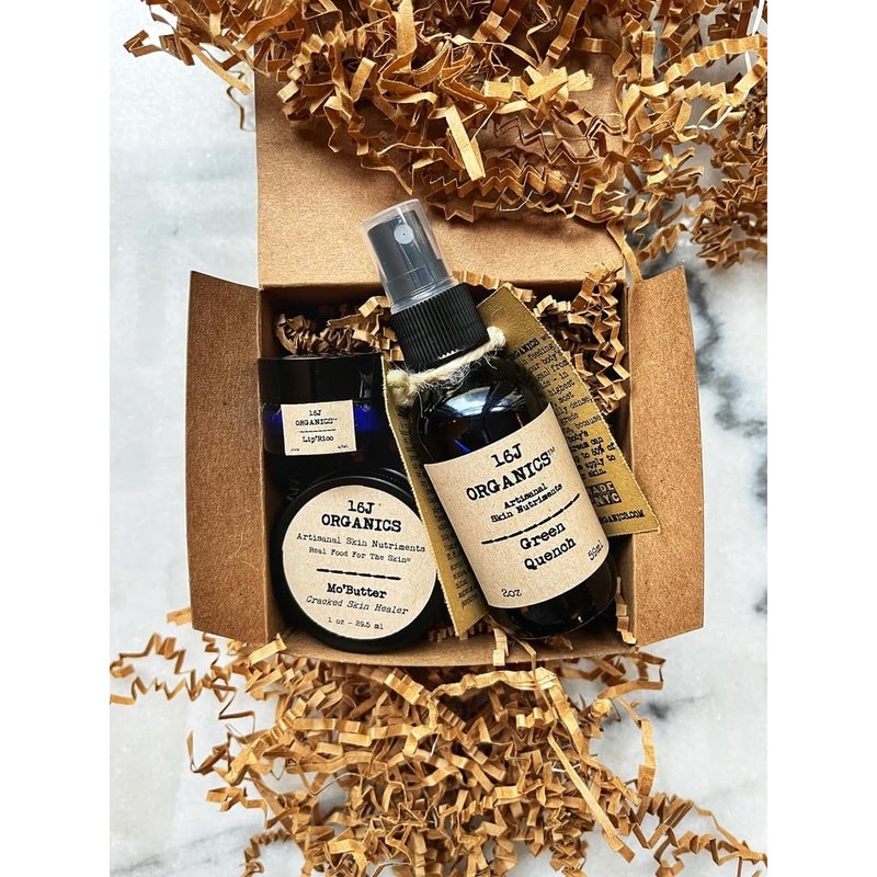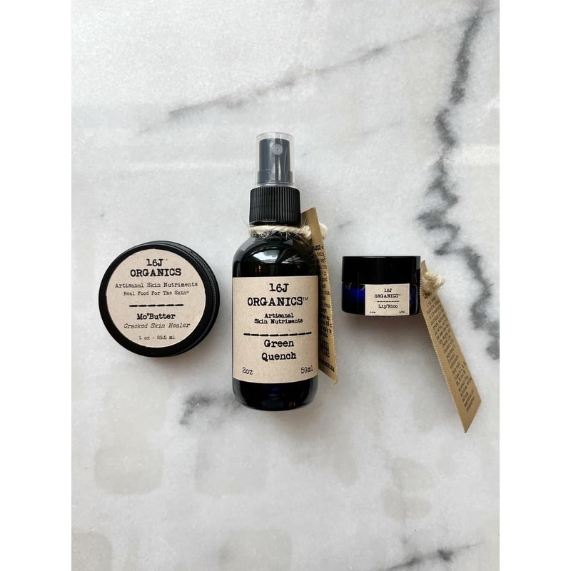16J Organics Signature Travel Collection: Green Quench Body Oil, Mo'Butter Dry Skin Treatment, & Lip'Rico Lip Balm - Handcrafted Organic Skincare Essentials for Nourished, Radiant Skin On-the-Go