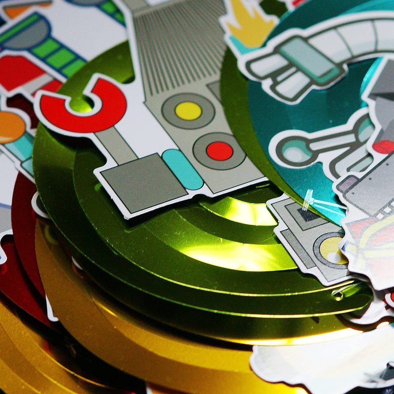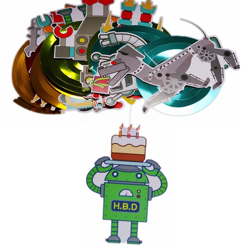 - Reusable ROBOT Themed party swirls are made of PVC plastic and durable 300 gsm cardstock.