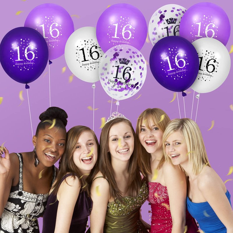 16th Purple Birthday Balloons Decorations, 16PCS Purple White Happy 16th Birthday Confetti Latex Balloons for Girls Boys Happy Birthday Party Wedding Anniversary Indoor Outdoor Party Supplies,12 Inch