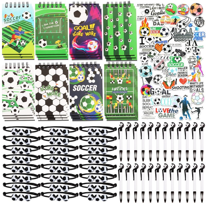 172 Pieces Soccer Party Favors Set, 24 Pieces Soccer Ball Pens 24 Pieces Soccer Bracelets 24 Pieces Soccer Mini Notepads 100 Pieces Soccer Stickers for Soccer Party Supplies Sports Gifts (Soccer)