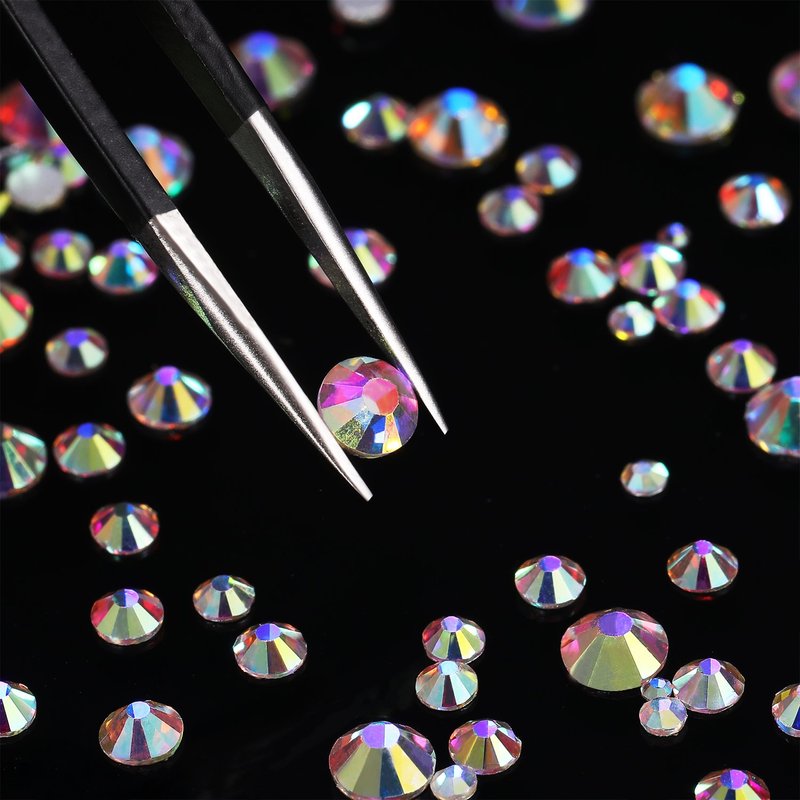 - Package includes: 2 pieces tweezers, 1 storage organizer box, approx. 1728 pieces crystals AB nail art rhinestones, good for nail art decoration, DIY craft, eye makeup, cell phone case, clothes, shoes, etc.