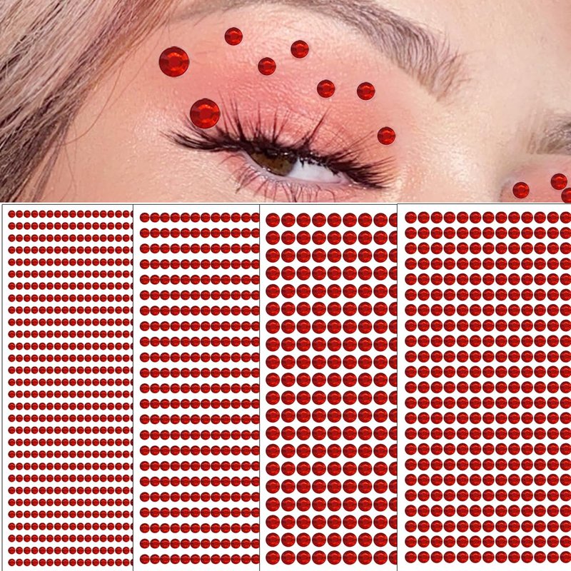 1792 Pcs Self Adhesive Rhinestones for Makeup Face Gems Stick on Face Jewels Eyes Gems Face Stickers Dotting Tools for Nail Art Body Eye Makeup Crafts Decoration Stick on Body Crystal Jewels (Big Red)