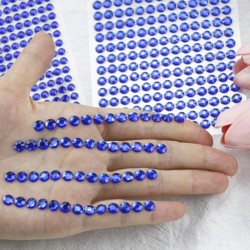 1799 Pcs 4 Sheets Rhinestone Stickers 3/4/5/6 mm Self Adhesive Rhinestones Gems for Face Eyes Makeup Hair Body (blue-3/4/5/6mm)
