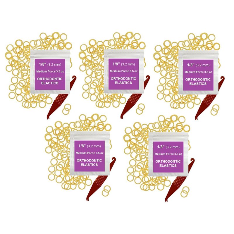 - MEDIUM FORCE 3.5 OZ - Suitable for a variety of orthodontic applications. These medium-sized bands are versatile, making them ideal for moderate tooth movements, maintaining space closures, and general alignment adjustments. They provide the necessary strength for average orthodontic treatments.