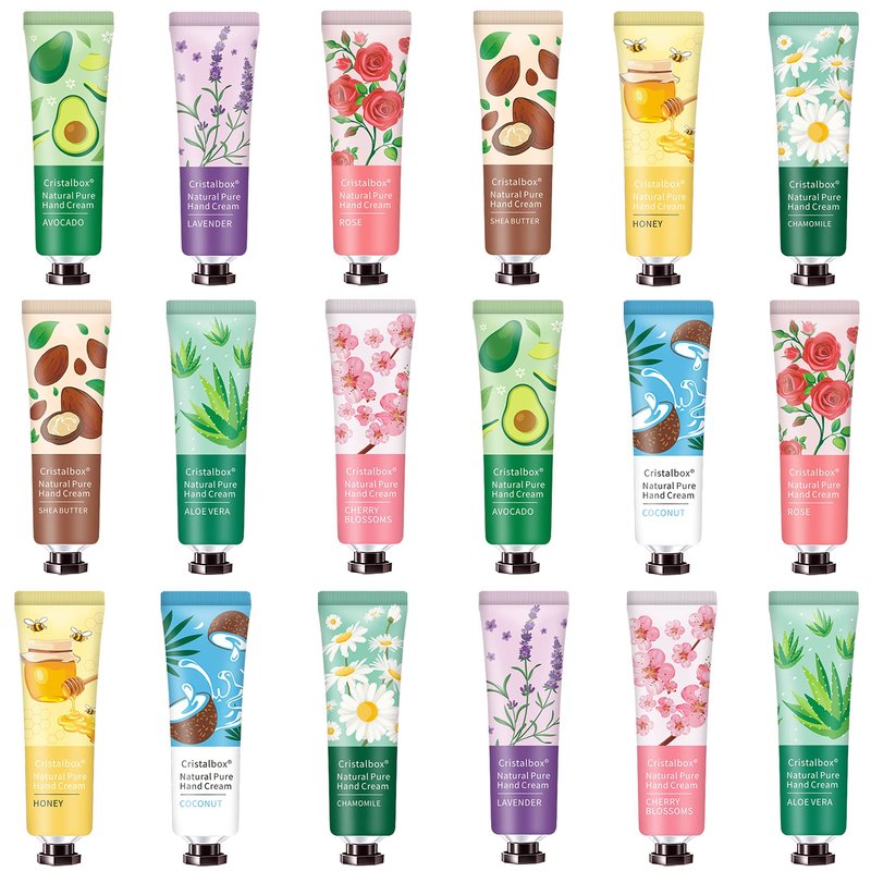 - 18 PACK Moisturizing Hand Care Lotion Hand Cream for working Hands:10 Natural Scents-honey,coconut,rose,avocado,cherry blossoms,grapefruit,chamomile,shea butter,lavender,aloe vera. Pick and choose your favorite scent based on your mood at the moment from our 10 natural fragrances