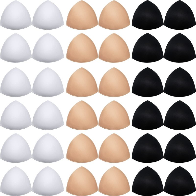 - What you get: you will get 18 pairs of triangle bra pads inserts in white, black and nude color, enough quantity can meet your daily use and replacement needs, you can also share with your female family members and female friends