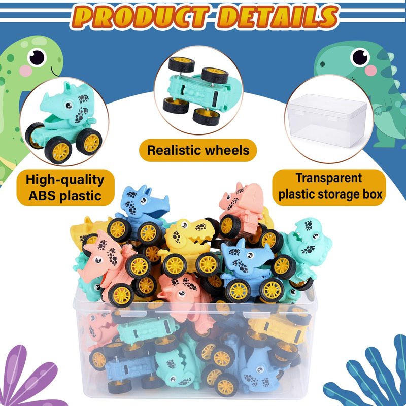 - Package Include: the value set includes 18 pcs colorful mini dinosaur pull back cars and 1 pcs storage box, enough quantity to meet the needs of your children, they can also share the cute toys with friends