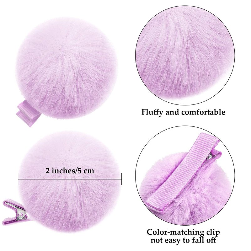 - Adorable and fluffy: each fur ball hair barrettes consists of a fluffy pom ball and a color-matching clip, the fluffy ball is soft and comfortable to touch, not easy to fall off, quality material and vivid color make it a nice hair decoration to your hairstyle
