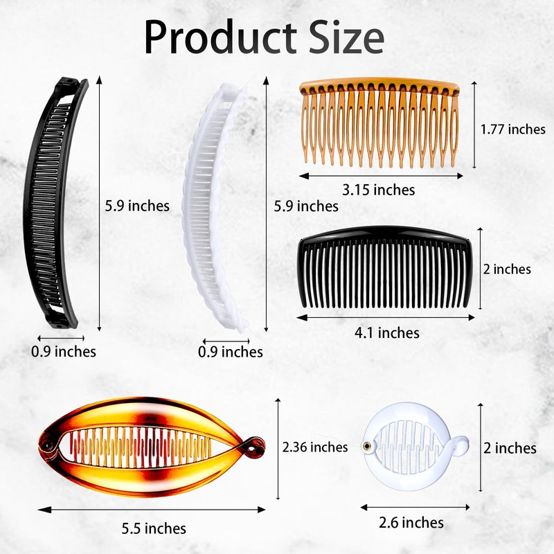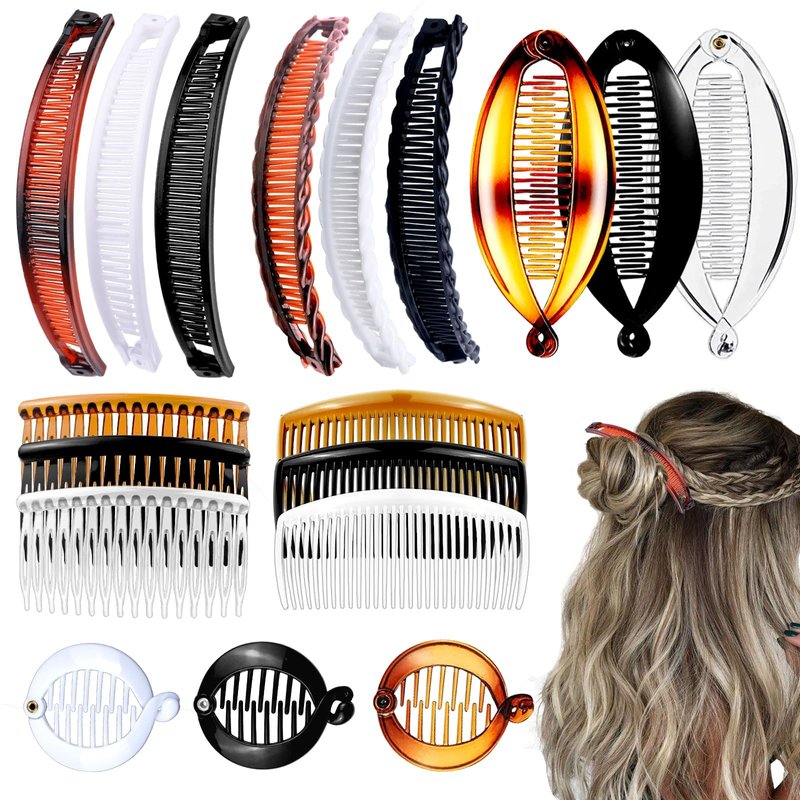- Package include: You will receive 18 pieces banana hair clips in 6 styles, including 3 double comb clips, 3 plastic double side banana clips, 3 pointed fish clips, 3 large round comb clips, 3 pcs 16 teeth plastic hair combs, 3 pcs 29 teeth plastic hair combs. These hair clips can meet your daily needs